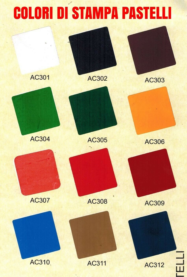 Colore del nastro e colore di stampa da scegliere dalle cartelle allegate in foto.