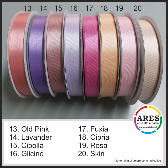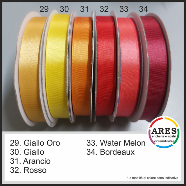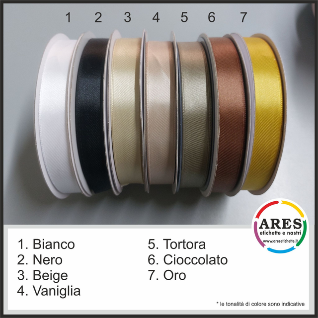 2) Inviare tramite email ares@aresetichette.it la grafica desiderata, indicandoci il colore del doppio raso scelto (esempio bianco) ed il colore di stampa (esempio oro) desiderato dalle cartelle colori allegate in foto.